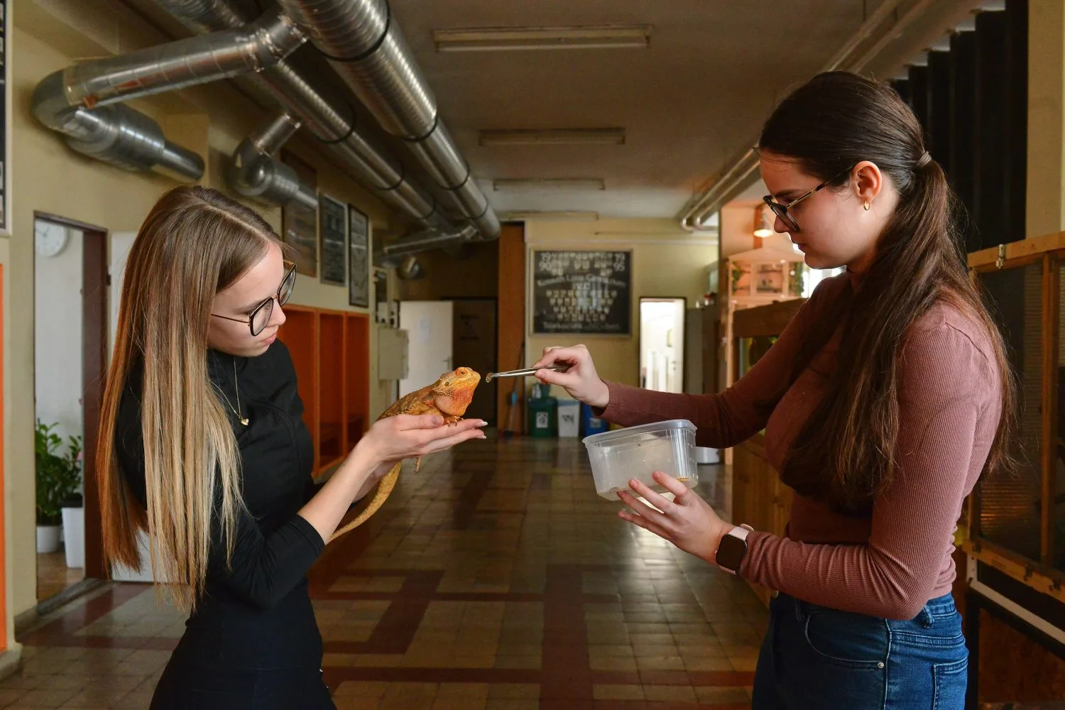 Az állatokat a diákok különböző akváriumokban és terráriumokban gondozzák, sőt, a műtéteket és a speciális ápolási folyamatokat is nyomon követhetik. „Olyan, mintha az egész életed erről szólna” – jegyzi meg Márk.