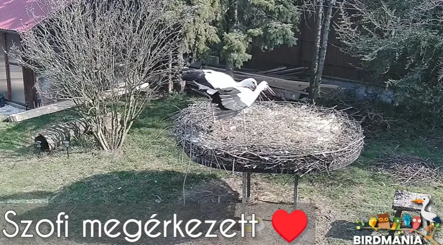 A jelenetet a BirdMania Madárpark fészekre irányított kamerája rögzítette. A felvételeken jól látható, ahogy Szofi március 10-én 13:17-kor landol a fészeknél, majd rövid időn belül újra együtt van társával.